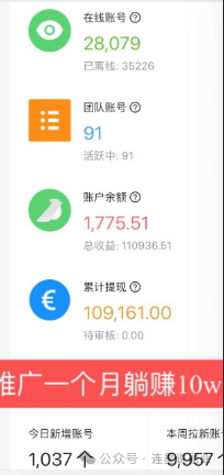 所以,作为一个0撸项目来说,还是很不错了,当然如果想收益更大化,就需要更多的账号,或者发展团队提高收益。
