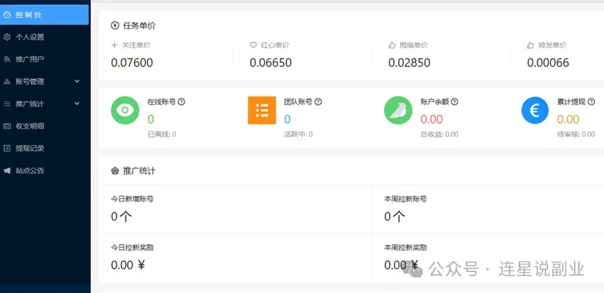 例如,直推用户的每个号完成点赞和关注任务后,用户会获得2圆奖励,100个号就是200圆收入。这种自动化的收溢模式,不仅节省时间,还能通过不断的推广扩大自己的收溢来源。